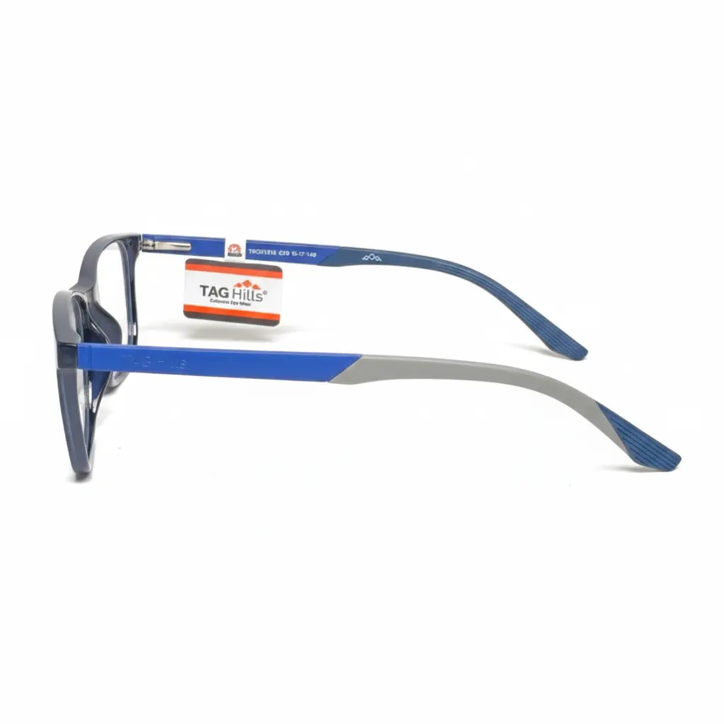 Sport-Inspired Design The frame features a versatile rectangular shape that suits most face types. The front is a deep, translucent navy blue that offers a modern twist on classic styles. The temples transition from a vibrant blue to a cool grey, featuring textured tips for enhanced grip—ensuring your glasses stay securely in place even during movement.