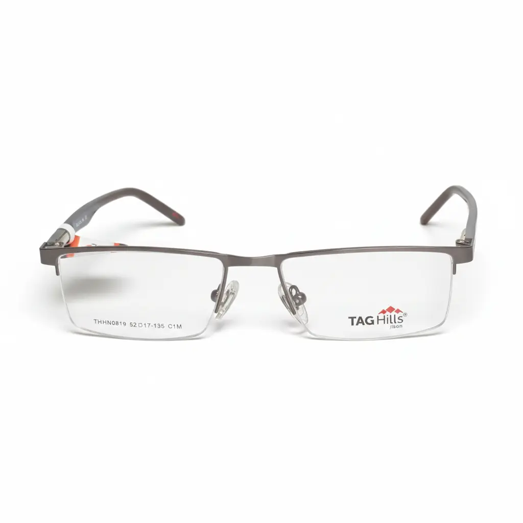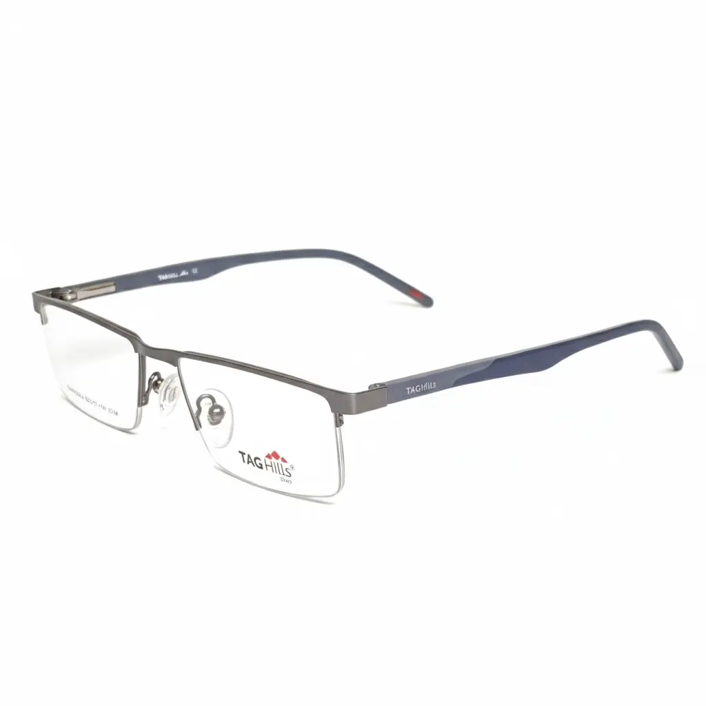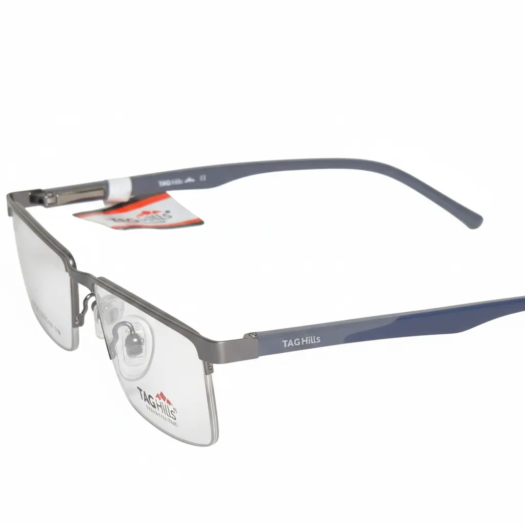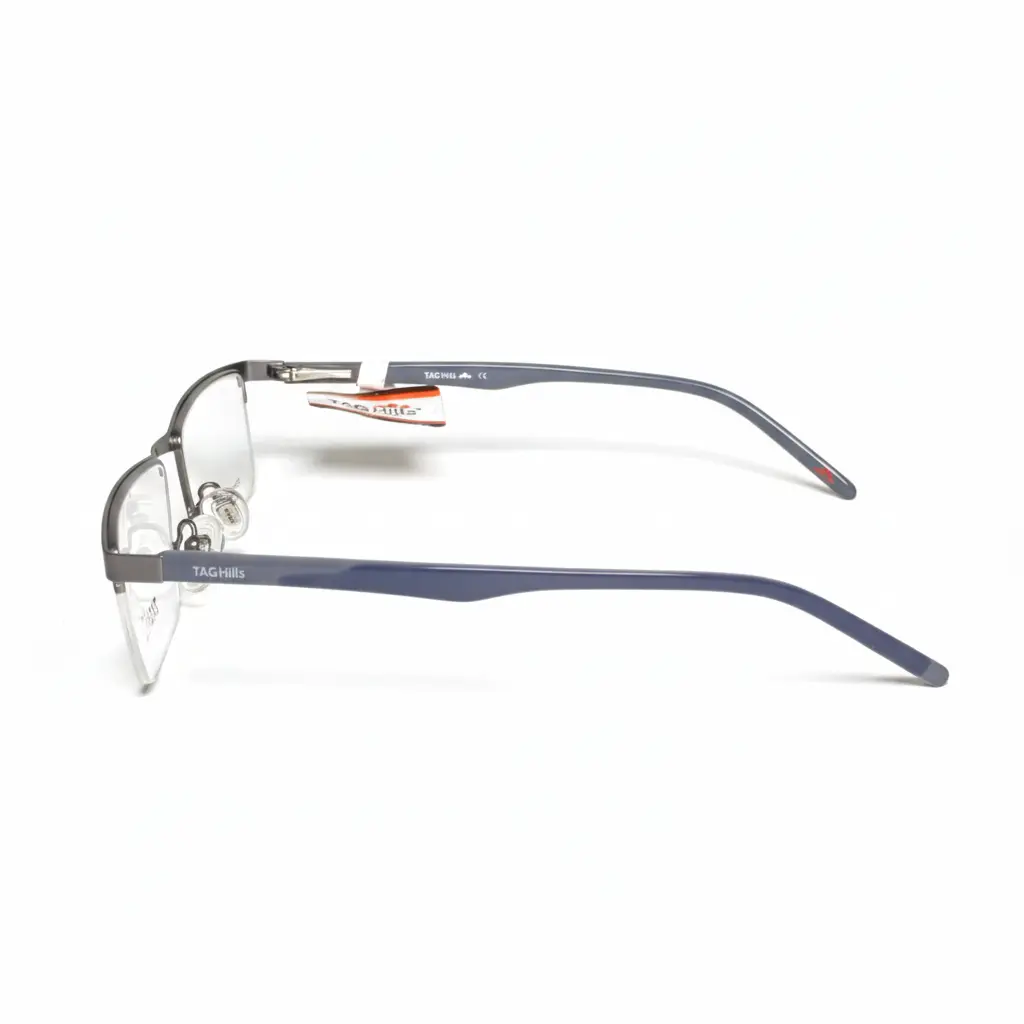 TAG Hills Premium Half-Rim Rectangular Eyeglasses – Gunmetal Grey & Slate Blue (Model THHN0819)